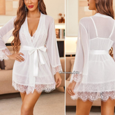 Bridal White Lace Babydoll Nightdress with Sheer Robe