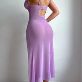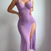 Lavender Sheer Mesh Lingerie Gown with Butterfly Appliqué & High Slit