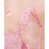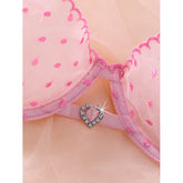 Lace Strappy Underwire Panty Set French Style 2-Piece Women's Lingerie Set Pink